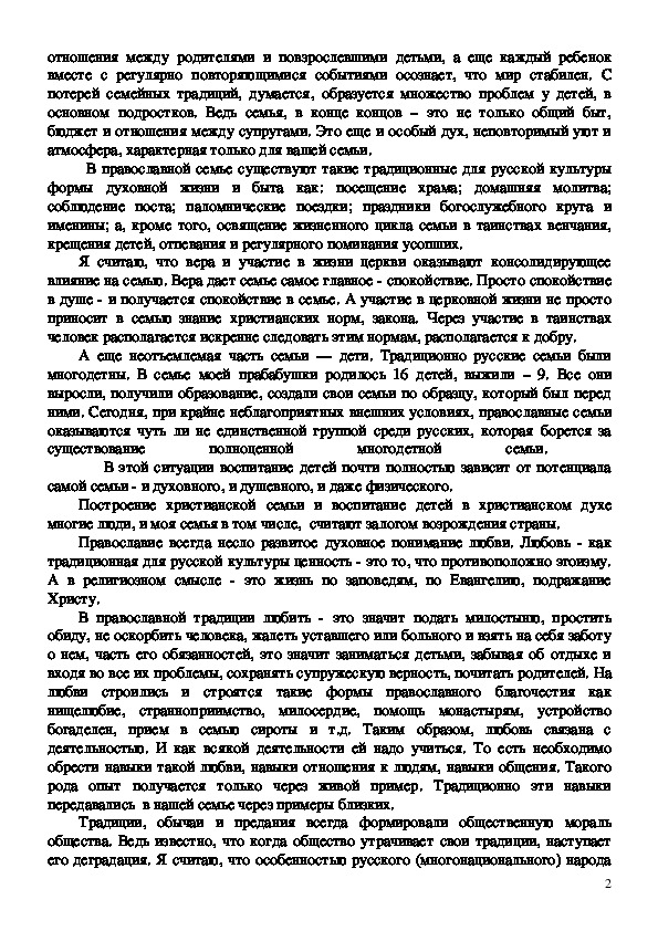 ними. Сегодня, при крайне неблагоприятных внешних условиях, православные семьи