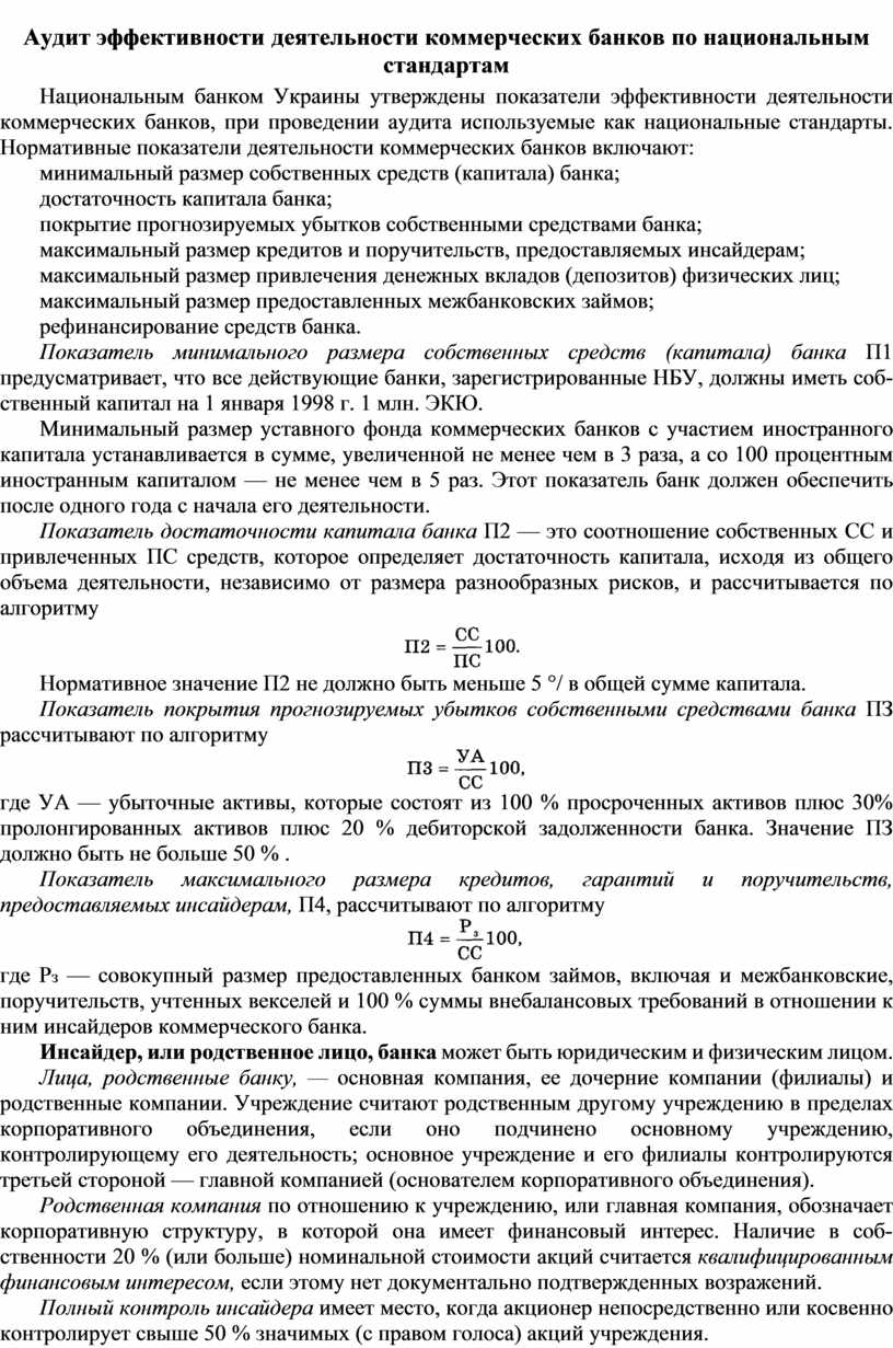 Аудит эффективности деятельности коммерческих банков по национальным стандартам