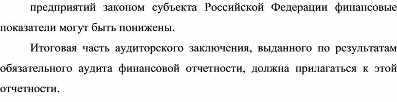 В случаях, предусмотренных законодательством Российской Федерации, бухгалтерская отчетность подлежит обязательному аудиту. Итоговая часть аудиторского заключения должна прилагаться к отчетности.