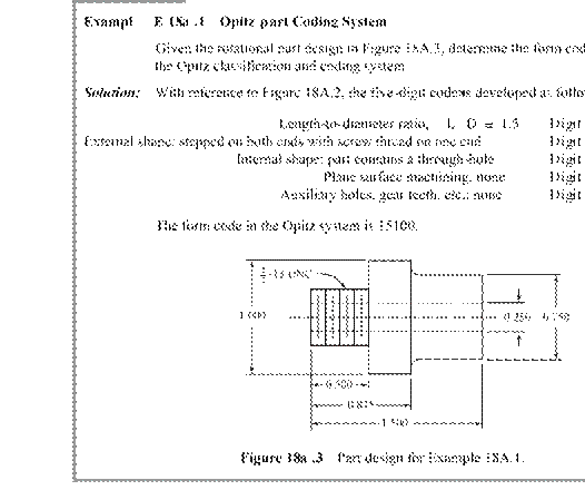 [24] Parts classification and coding was a popular topic in the trade literature during the 1980s, and, as mentioned, a number of commercial classification and coding systems were available. The companies included Brisch-Birn Inc. (Brisch System), Lovelace, Lawrence & Co. (Part Analog System), Manufacturing Data Systems, Inc. (CODE), Metcut Research Associates (CUTPLAN), and Organization for Industrial Research (Multi-Class). An Internet search revealed that most of these companies are no longer in business or their business no longer includes parts classification and coding. This is why coverage of this topic has been reduced in this edition of the book relative to earlier editions.