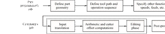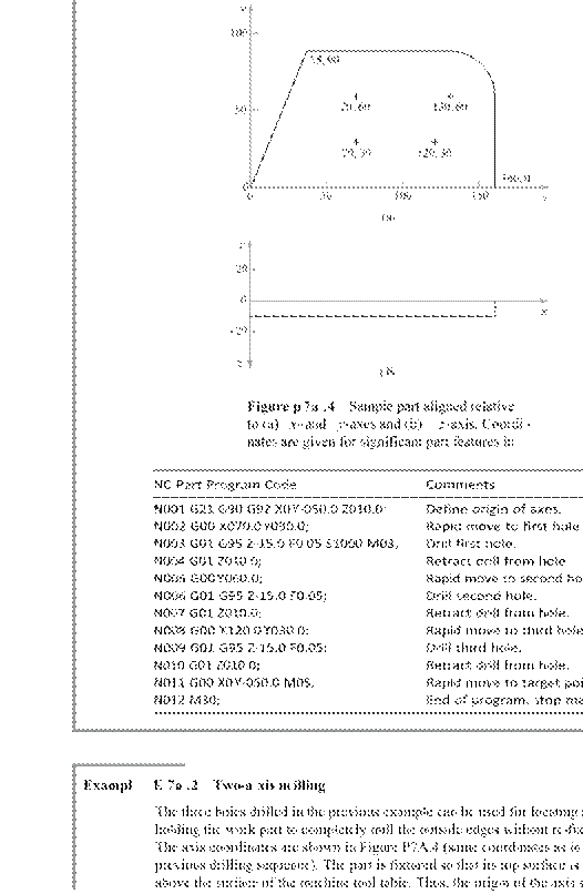 [8] Readers familiar with previous editions of this book will note that the appendix on APT is no longer included in the current edition. The author’s impression is that APT is not widely used, especially in the United States, because it has largely been replaced by CAD/CAM part programming (Section 7.5.3). In addition to CAD/CAM part programming, manual part programming (G-codes and M-codes, Section 7.5.1 and Appendix 7A) and manual data input (Section 7.5.4) are also common in machine shops.