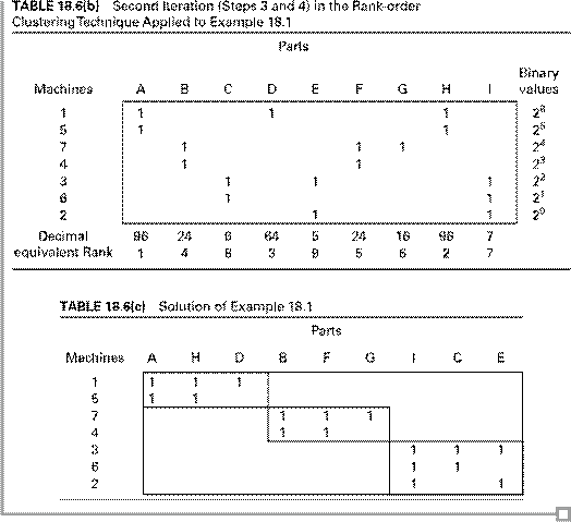 [25] For clarity in the part-machine incidence matrices and related discussion, parts are identified by alphabetic character and machines by number. In practice, numbers would be used for both.