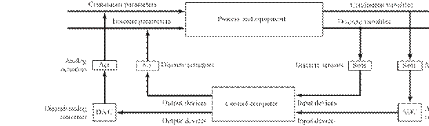[6] Other examples of process parameters include desired coordinate axis value in a positioning system, valve open or closed in a fluid flow system, and motor on or off. Examples of corresponding process variables include the actual position of the coordinate axis, flow rate of fluid in the pipe, and rotational speed of the motor.