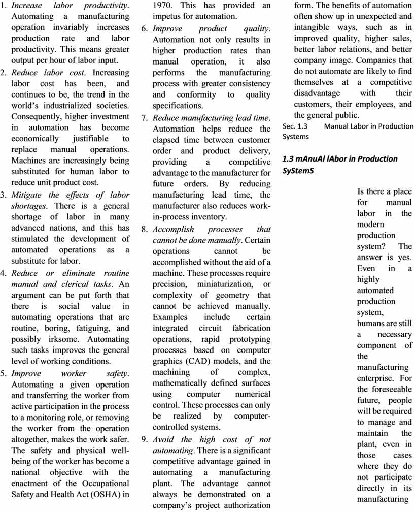 1.3 Manual Labor in Production Systems 11