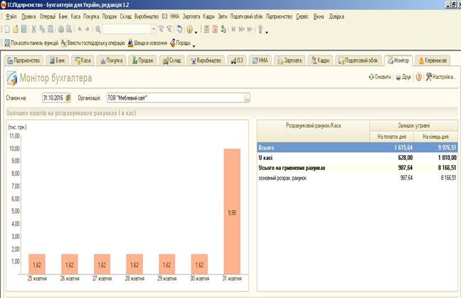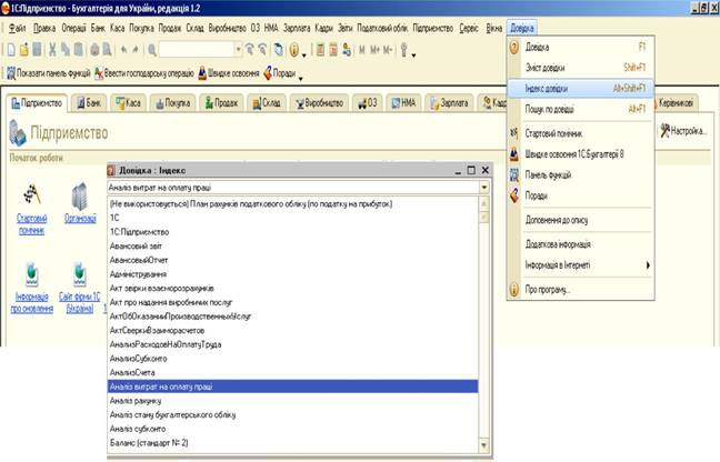 Рис.3.164 Меню Монітор бухгалтера в «1С: Бухгалтерія 8.2»