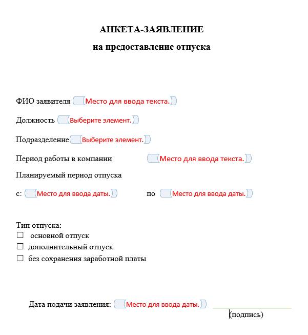 Готовый пример заполнения