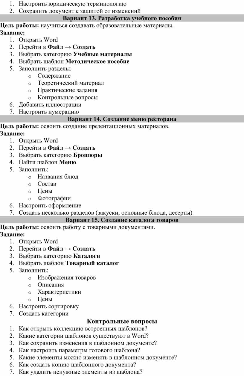 - изучить методы применения шаблонов в документообороте.