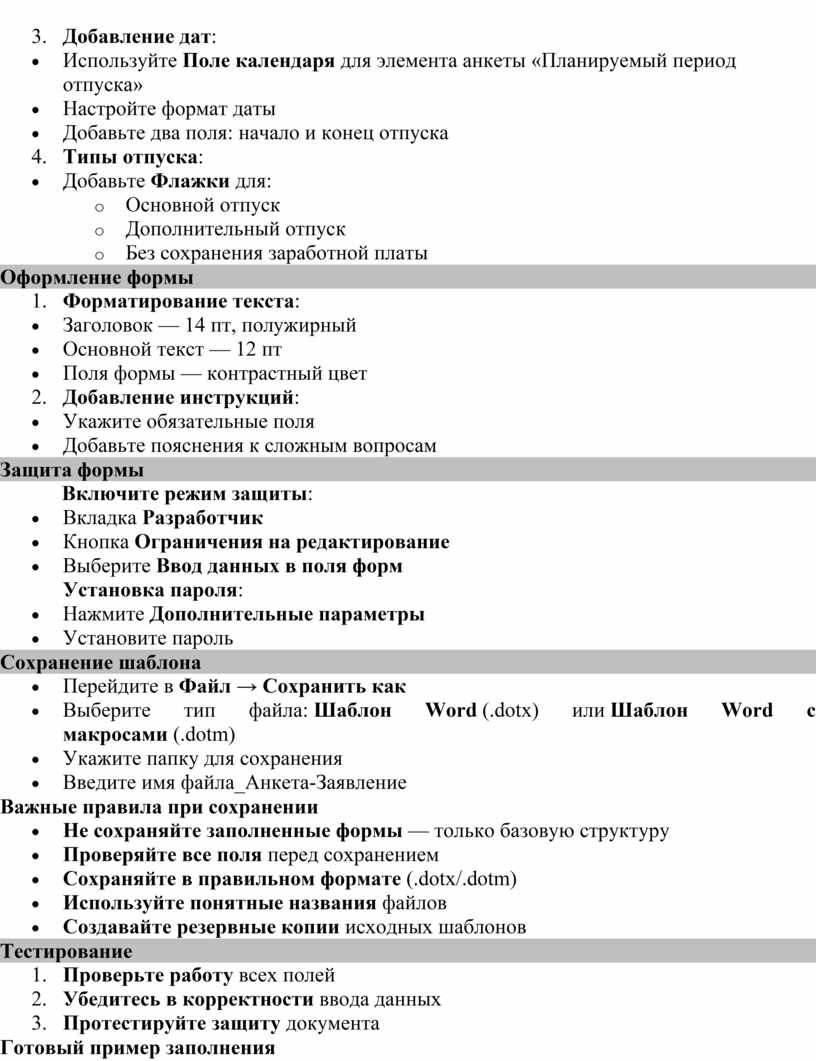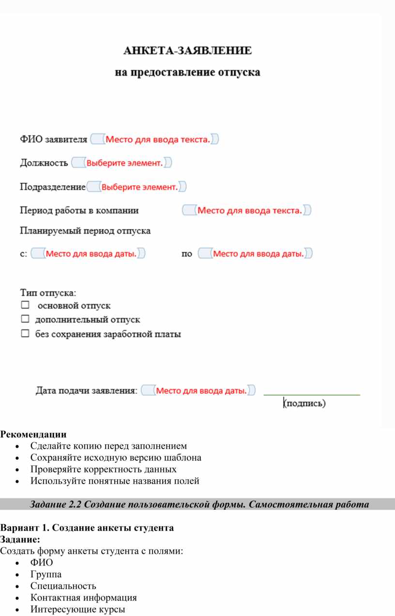 · Не сохраняйте заполненные формы — только базовую структуру