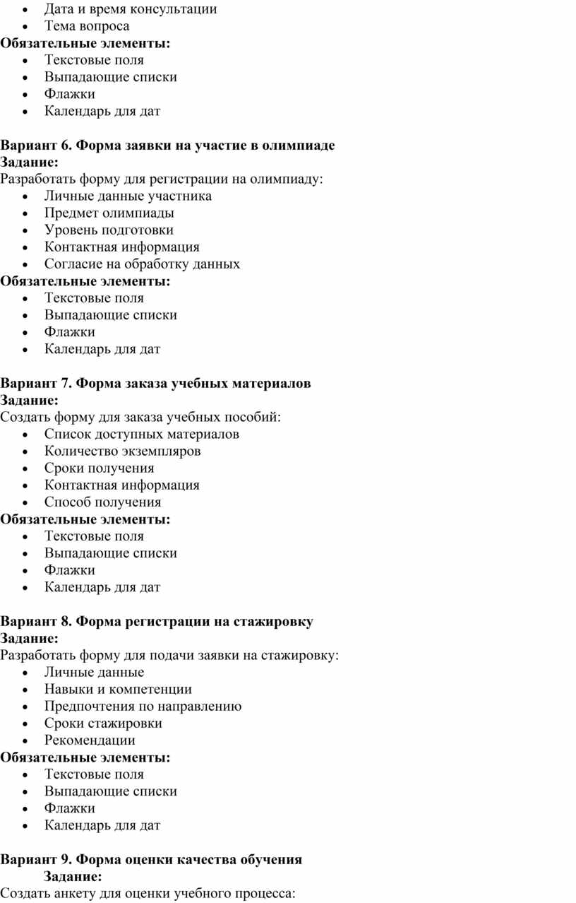 Разработать форму для записи на консультацию к преподавателю: