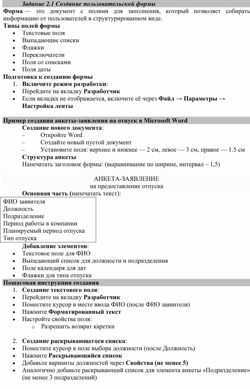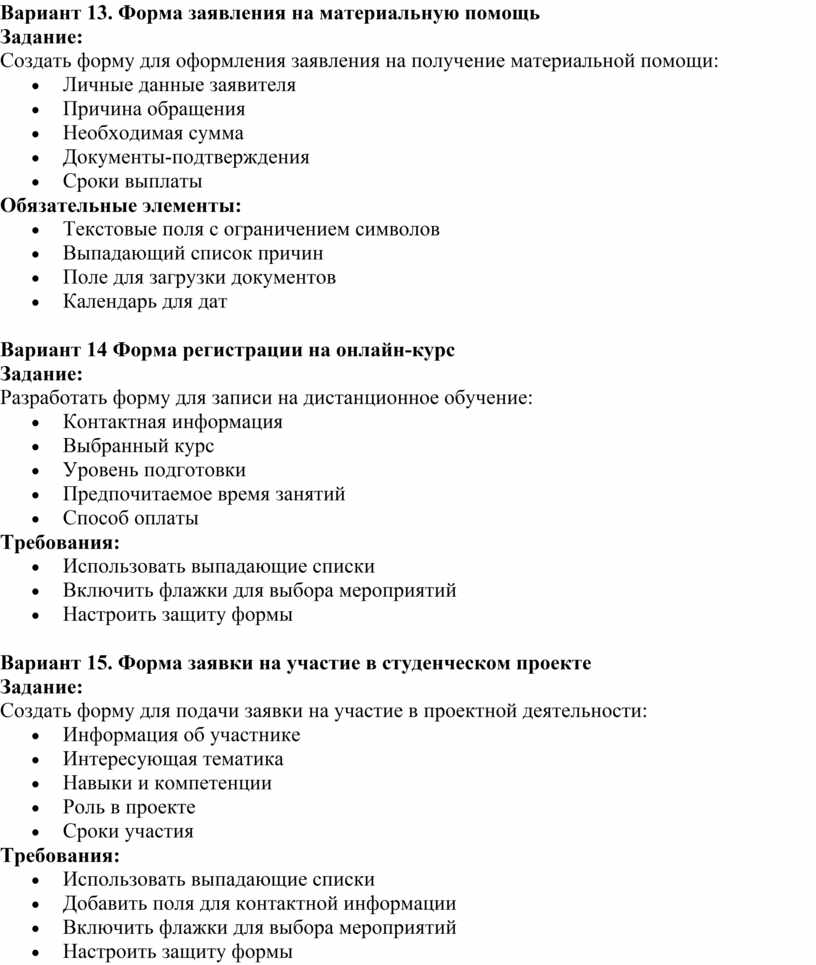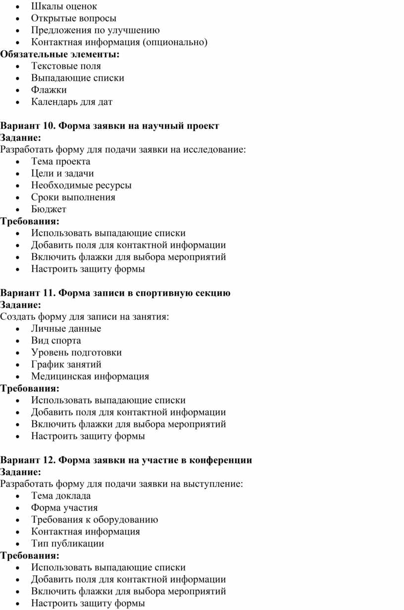 Создать форму для подачи заявки на участие в проектной деятельности:
