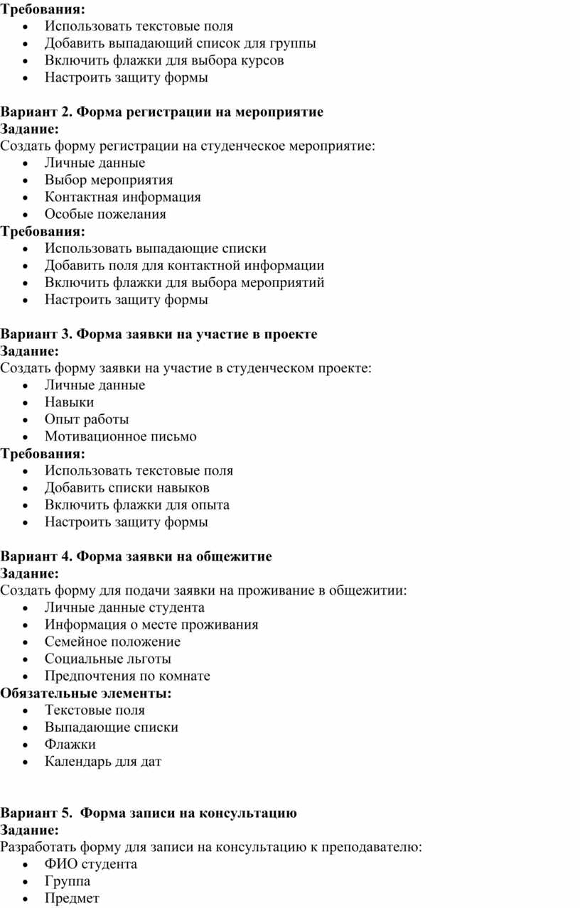 Создать форму заявки на участие в студенческом проекте: