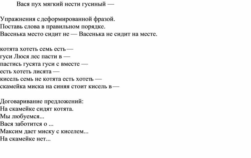 Упражнения с деформированной фразой.