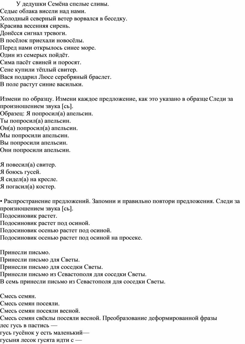 Автоматизация [С’] в слогах, словах и предложениях