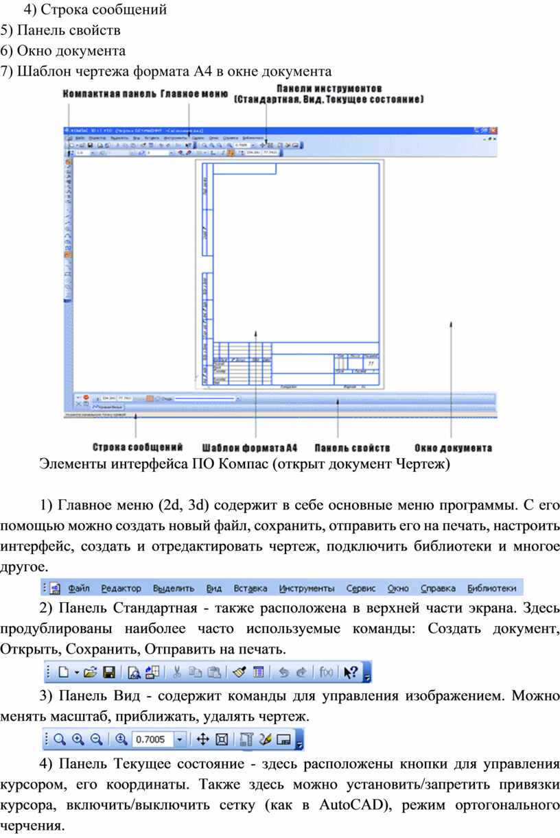 Элементы интерфейса ПО Компас (открыт документ Чертеж)