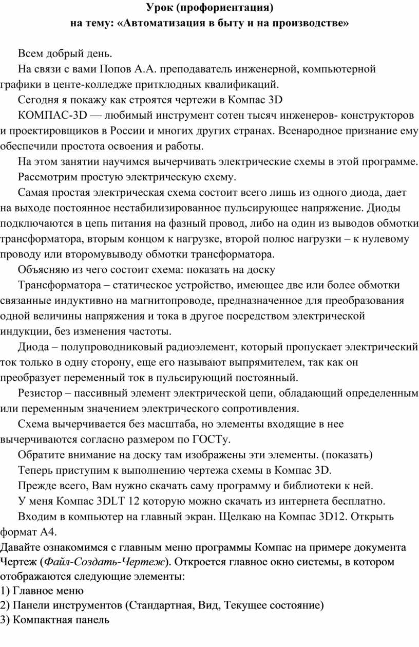 На связи с вами Попов А.А. преподаватель инженерной, компьютерной графики в центе-колледже притклодных квалификаций.