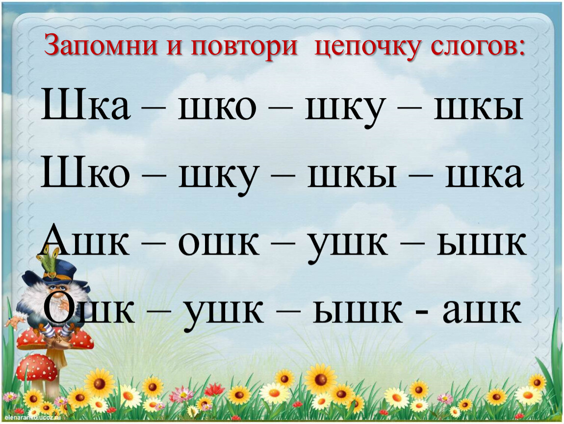 Шка – шко – шку – шкы