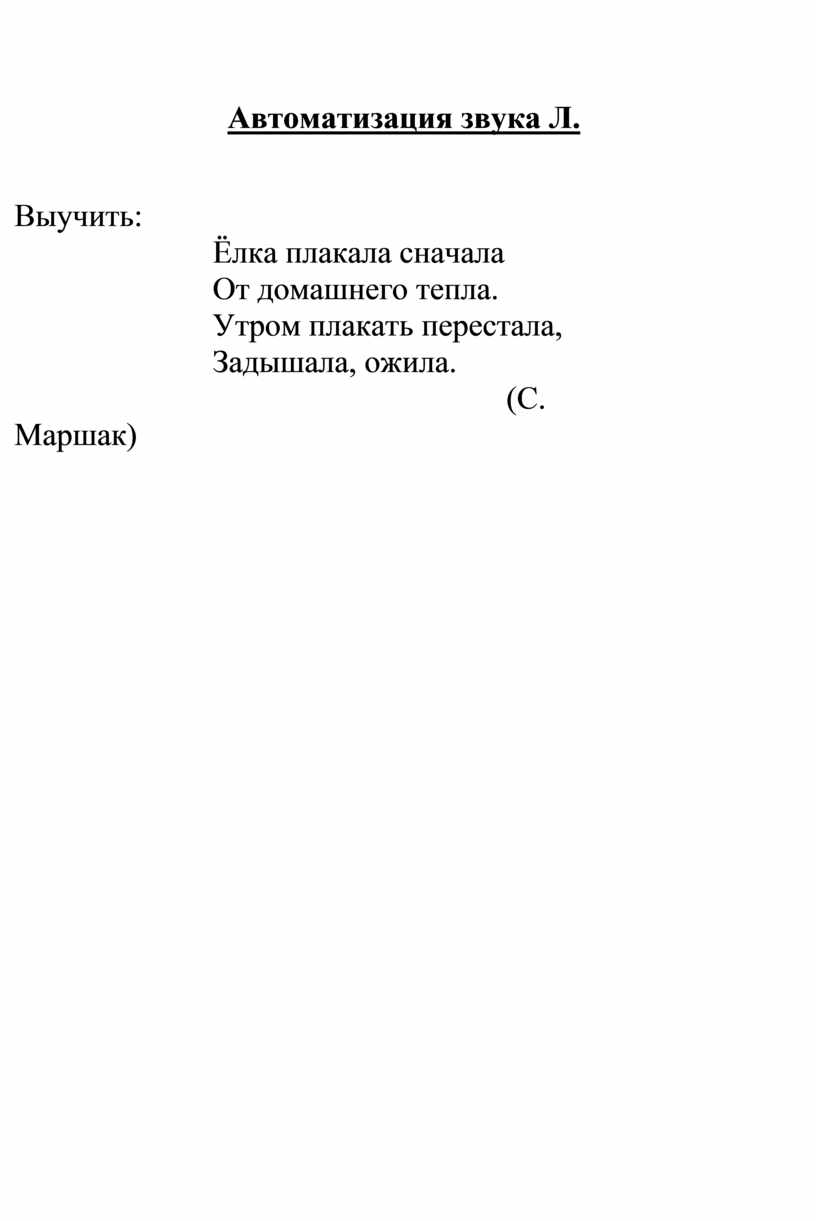 Во дворе лаял пёс. По реке плыл плот. Котёнок лакал молоко. Павел пригладил волосы. Нил получил письмо от Михаила. Нил сам выгладил полотенце и платки. Я нашёл и положил в банку много червей. В колхозе я молотил зерно и работал на веялке. Отец служил на флоте и плавал на подводной лодке. Солдат доложил, что выполнил задание. Петя сломал, а потом наладил велосипед. Володя забыл, куда положил пенал. Во дворе полаял и замолк пёс. Кот ловил мышку, но не поймал – мышка убежала. Кол около стола, стол около кола. Вот весёлый колобок покатился, как клубок.