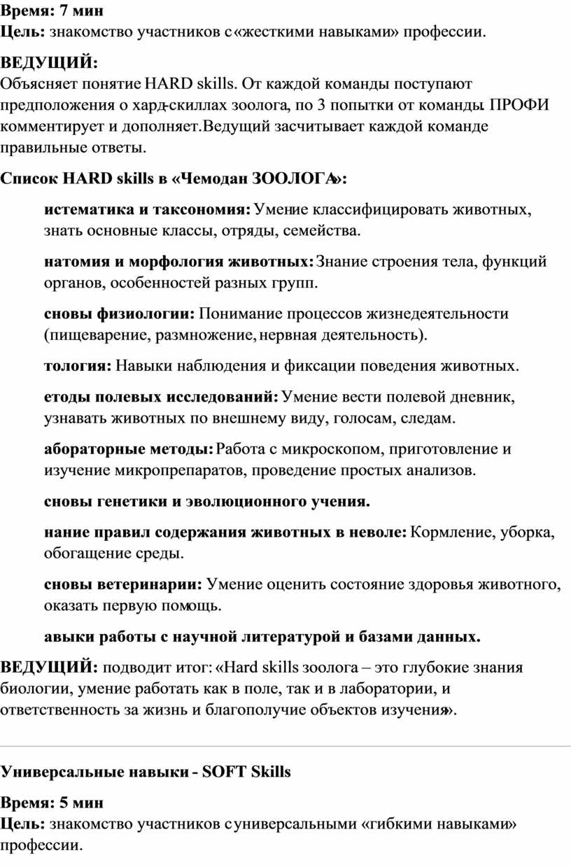 Список HARD skills в «Чемодан ЗООЛОГА»: