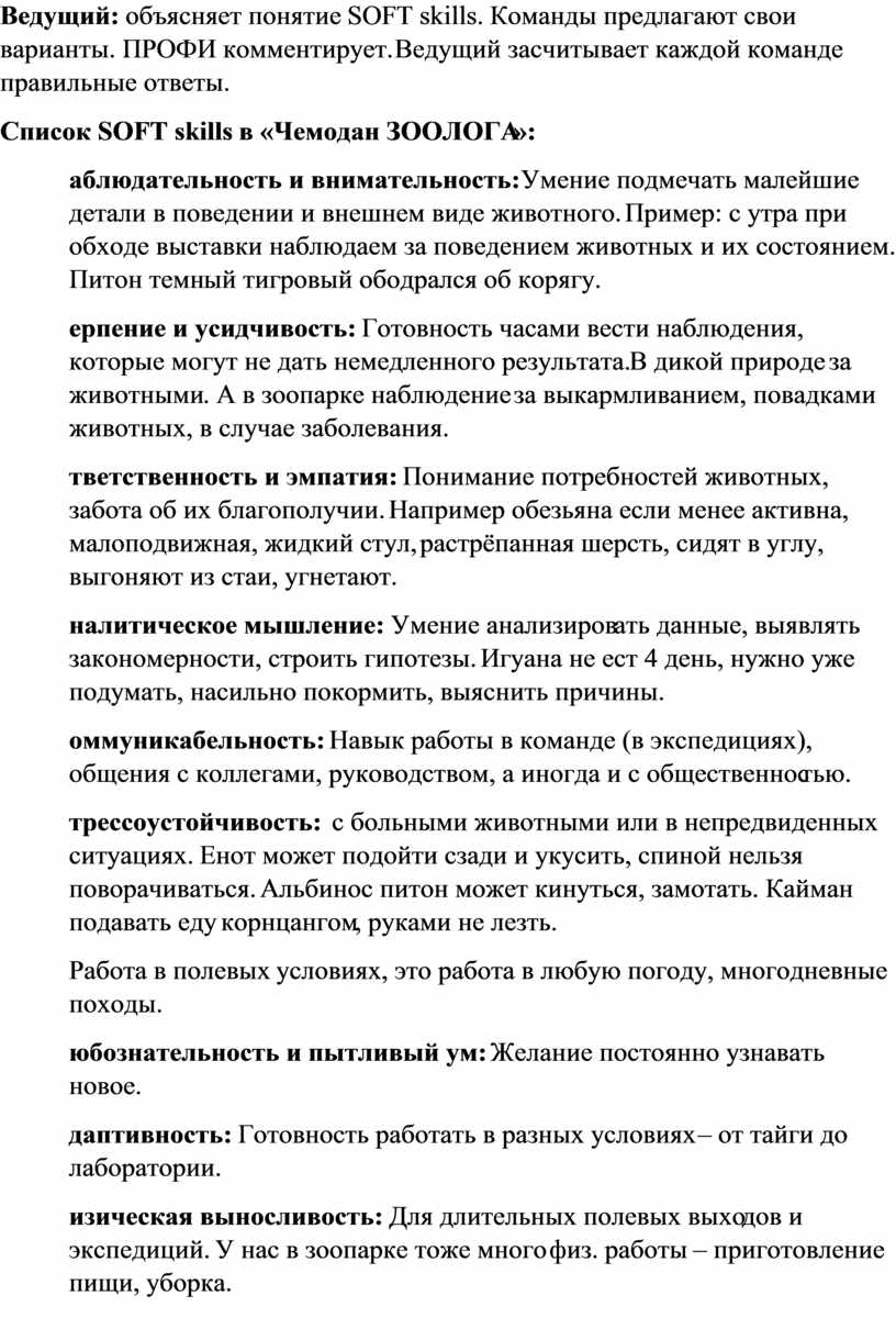 Список SOFT skills в «Чемодан ЗООЛОГА»: