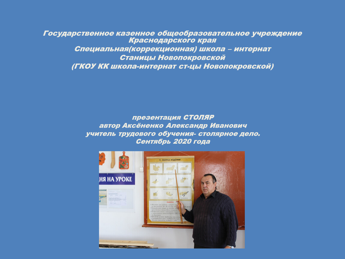 презентация СТОЛЯРавтор Аксёненко Александр Ивановичучитель трудового обучения- столярное дело.Сентябрь 2020 года