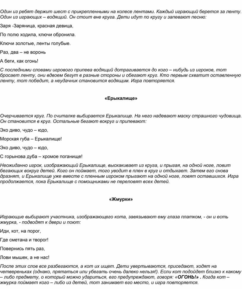 «Народные, хороводные игры в организации