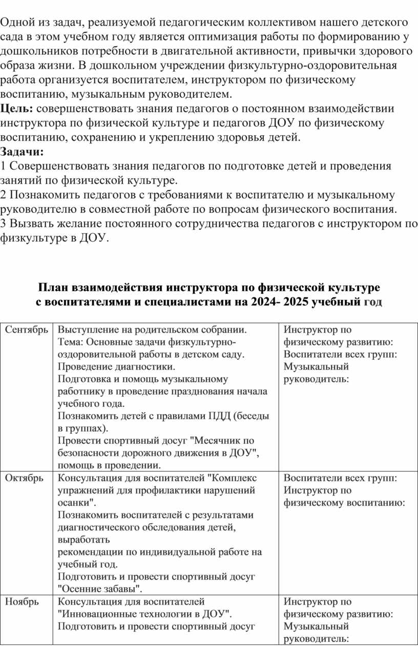 с воспитателями и специалистами на 2024- 2025 учебный год