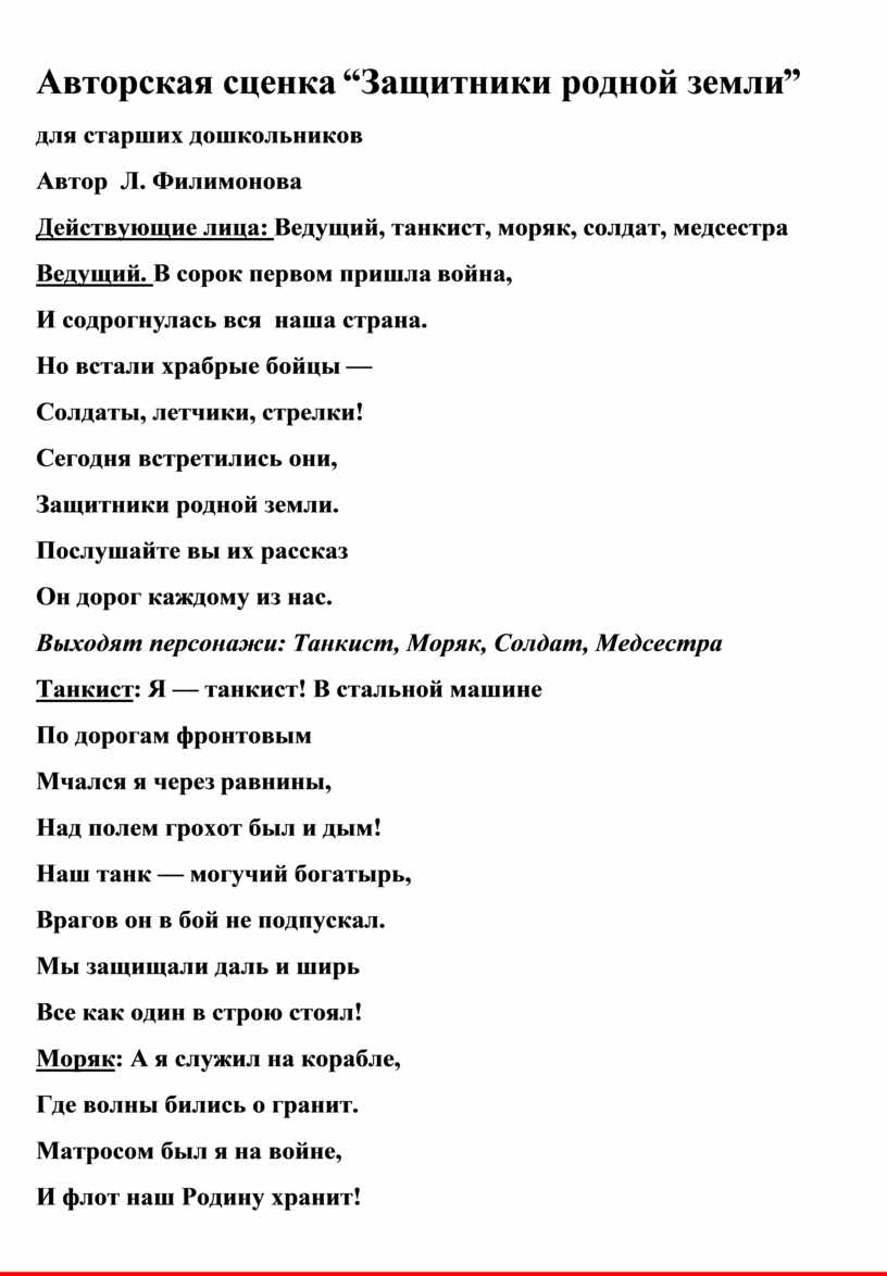 Авторская сценка “Защитники родной земли”