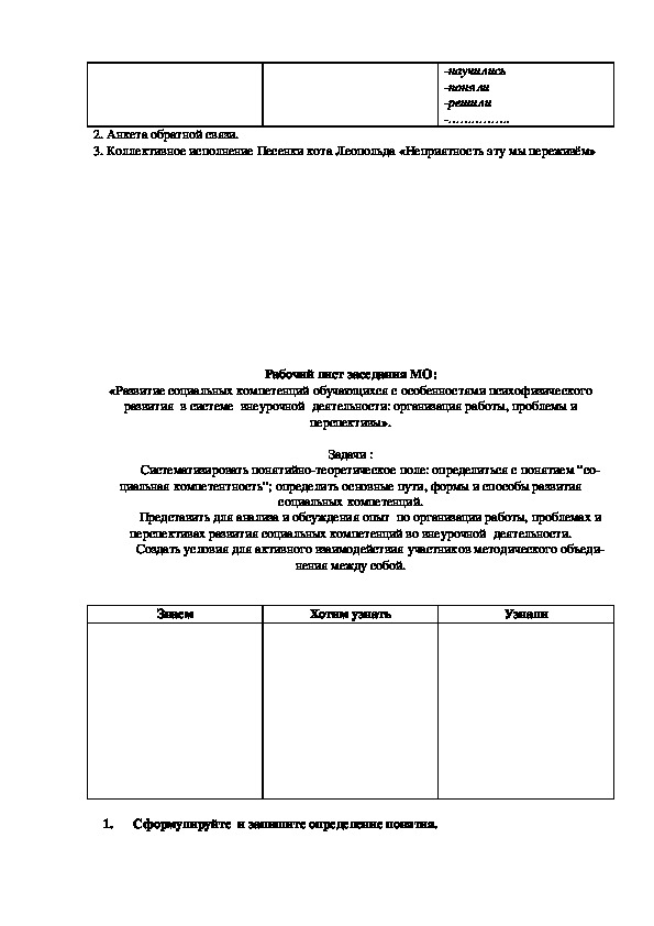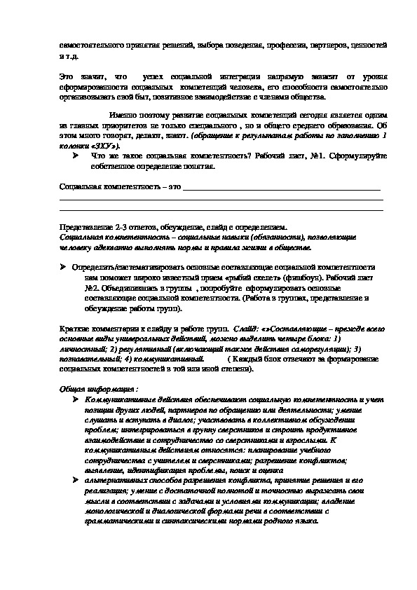Что же такое социальная компетентность? Рабочий лист, №1. Сформулируйте