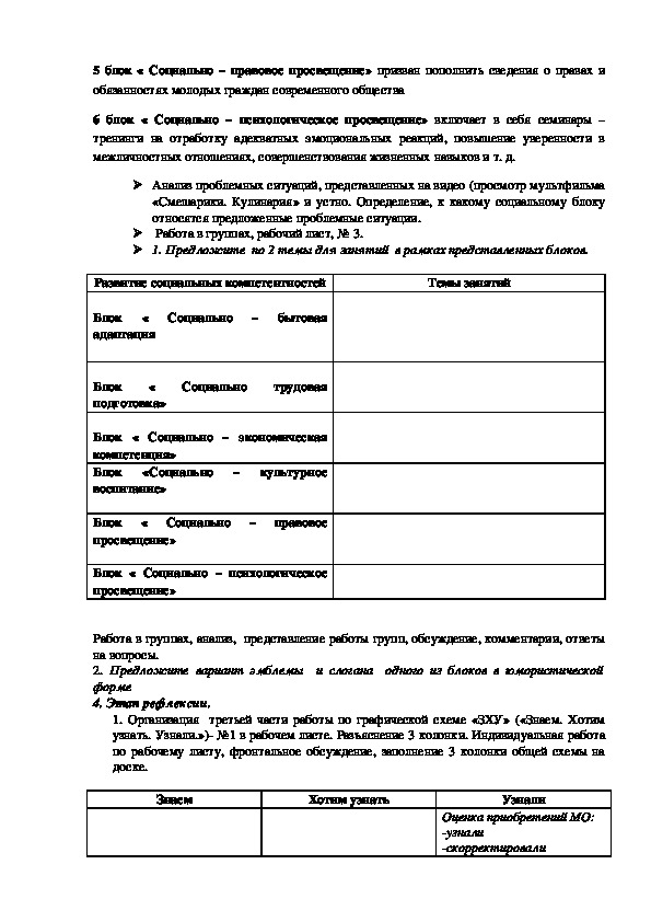 1. Организация третьей части работы по графической схеме «ЗХУ» («Знаем. Хотим