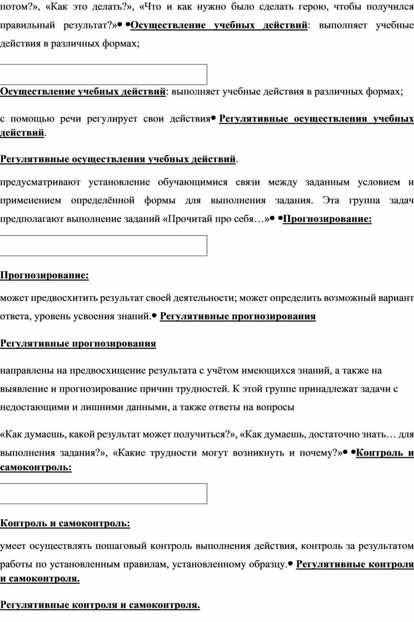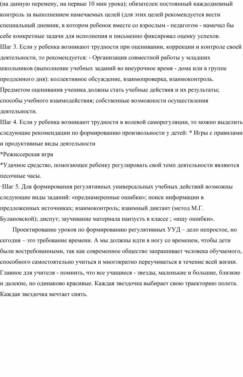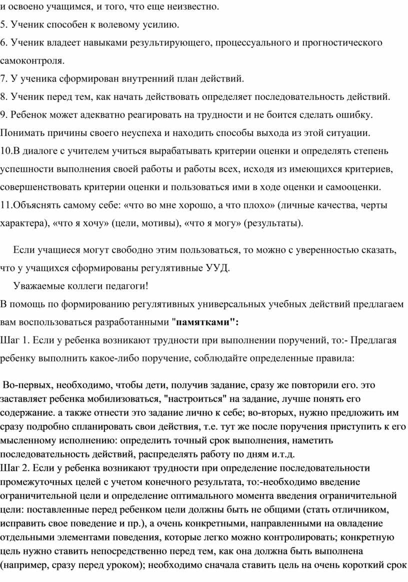 В помощь по формированию регулятивных универсальных учебных действий предлагаем
