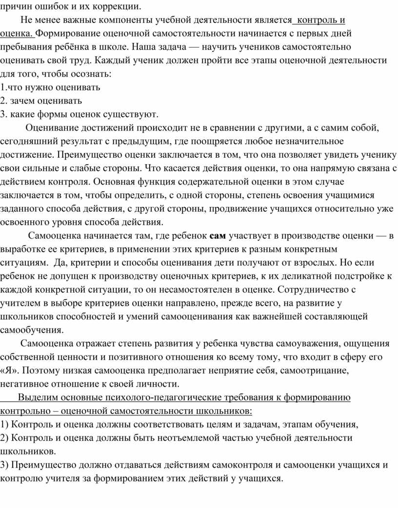 возникают трудности при оценивании, коррекции и контроле своей деятельности, то
