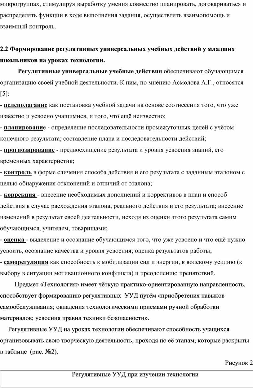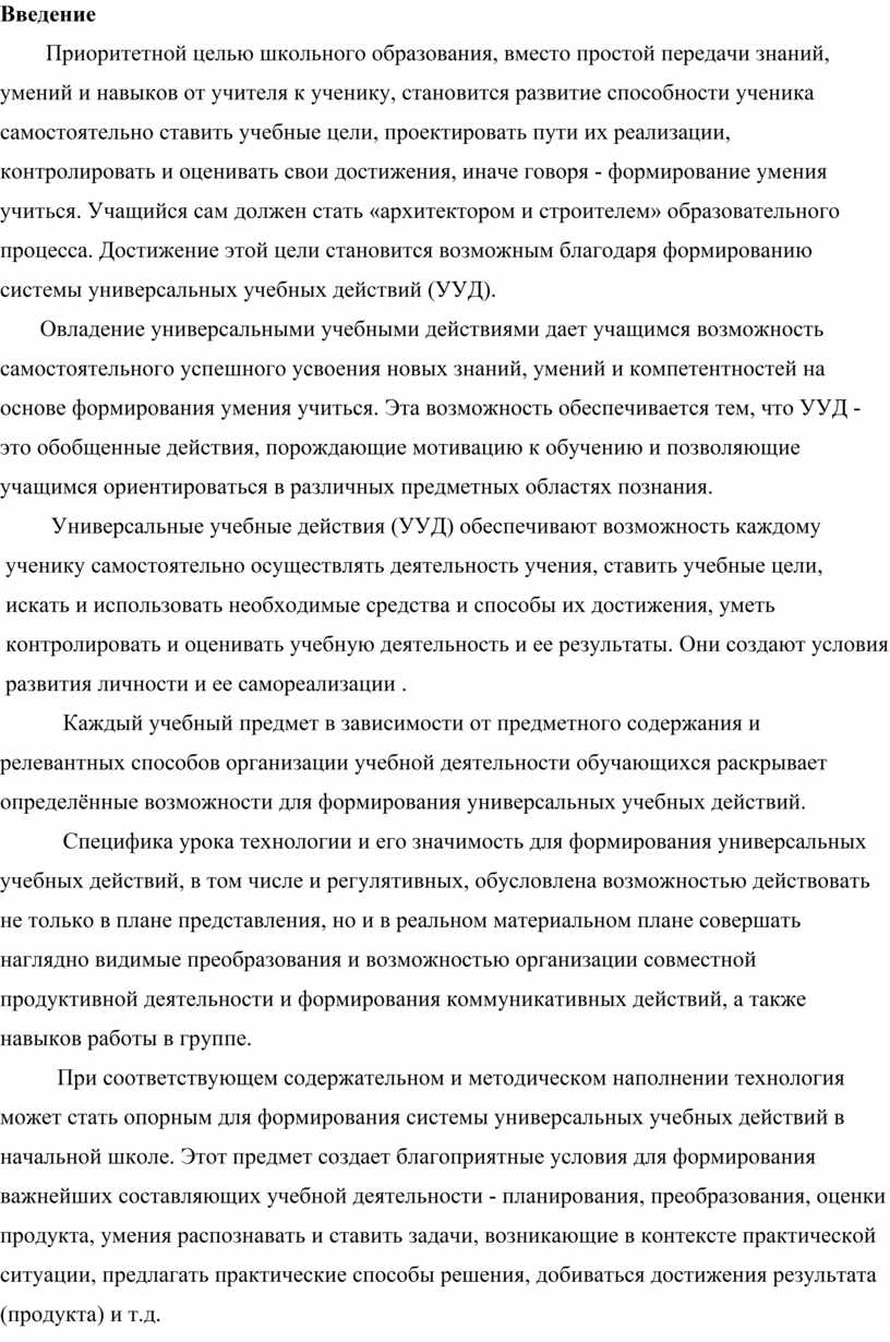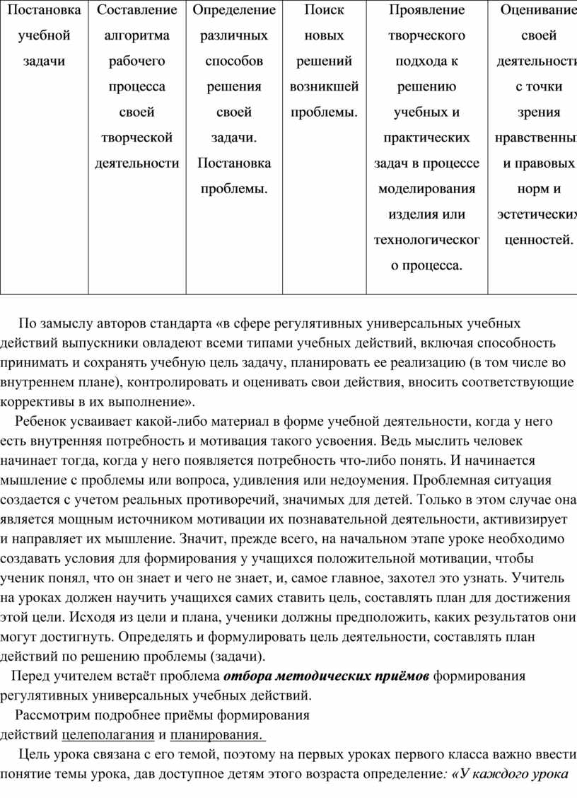 2. Формирование регулятивных универсальных учебных действий на уроках технологии
