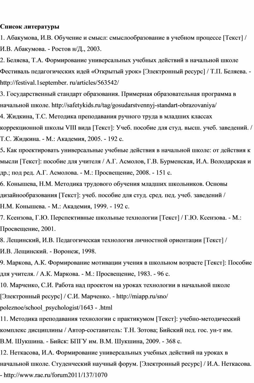 1. Абакумова, И.В. Обучение и смысл: смыслообразование в учебном процессе [Текст] / И.В. Абакумова. - Ростов н/Д., 2003.