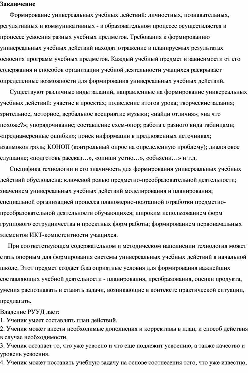 3.1 Возможности уроков технологии для формирования универсальных учебных действий