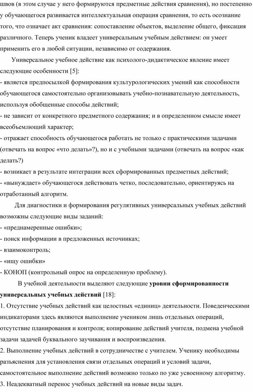 В учебной деятельности выделяют следующие уровни сформированности универсальных учебных действий [18]: