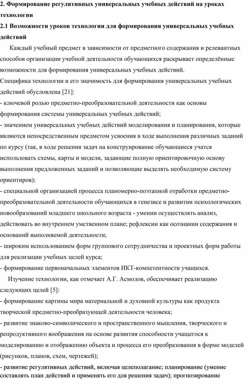 2.1 Возможности уроков технологии для формирования универсальных учебных действий