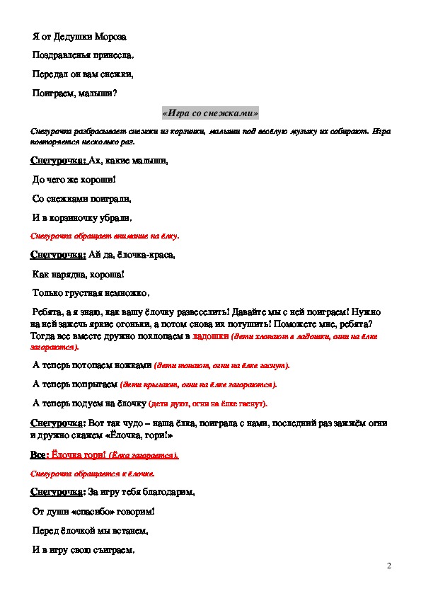 Дети с ведущей и Снегурочкой громко произносят слова. Если тихо произносят повторяют ещё