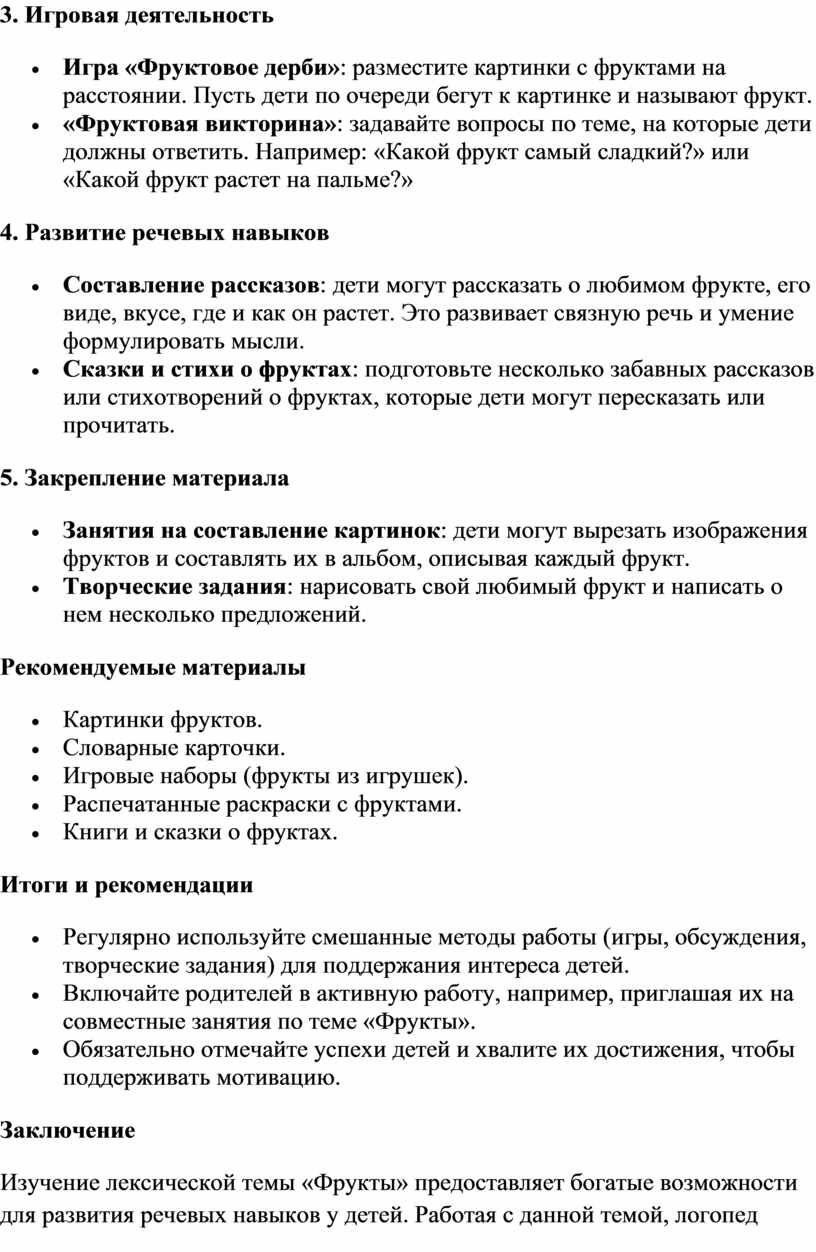 4. Игровая деятельность для закрепления лексики и улучшения речевых навыков.