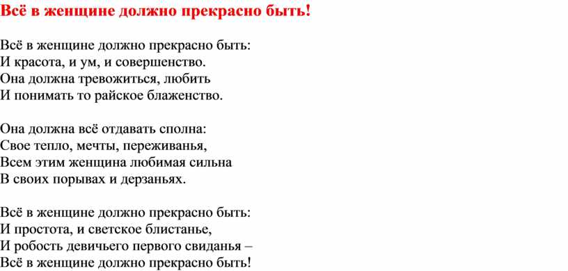 Всё в женщине должно прекрасно быть: