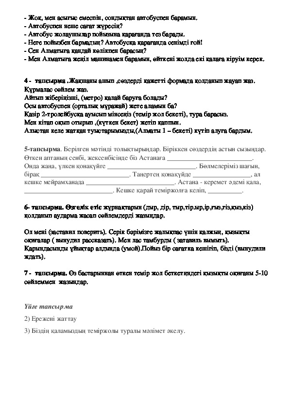 7 тапсырма. Өз бастарыннан өткен темір жол беткетңндегі қызықты оқиғаны 510
