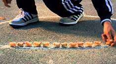 Әрбір жаттығу үшін бос кеңістік, асық тастары, бор.