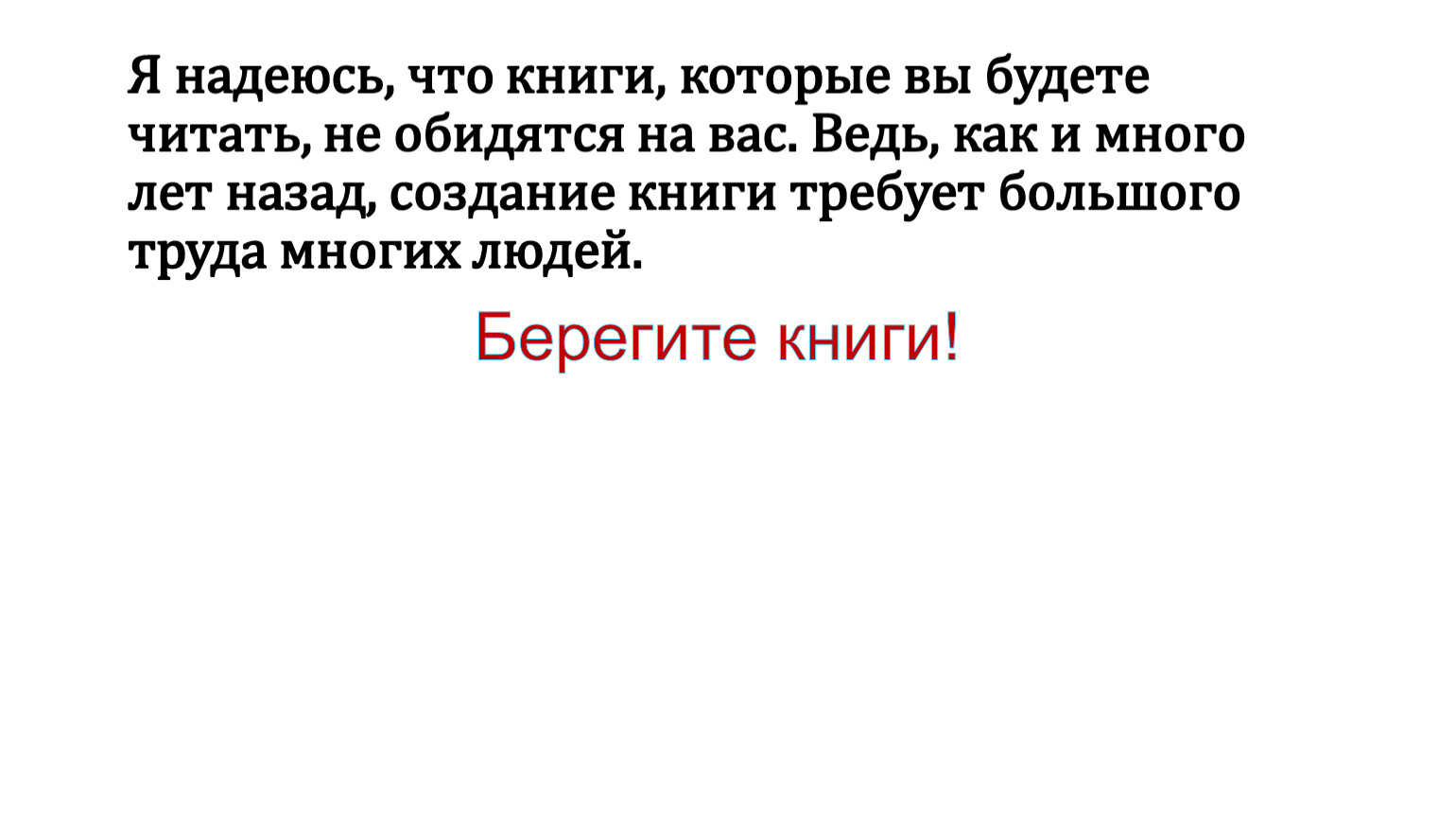 Я надеюсь, что книги, которые вы будете читать, не обидятся на вас. Ведь, как и много лет назад, создание книги требует большого труда многих людей.