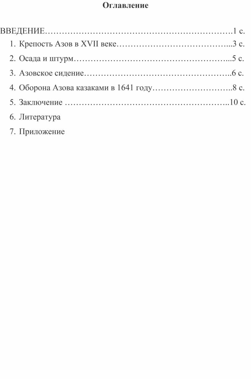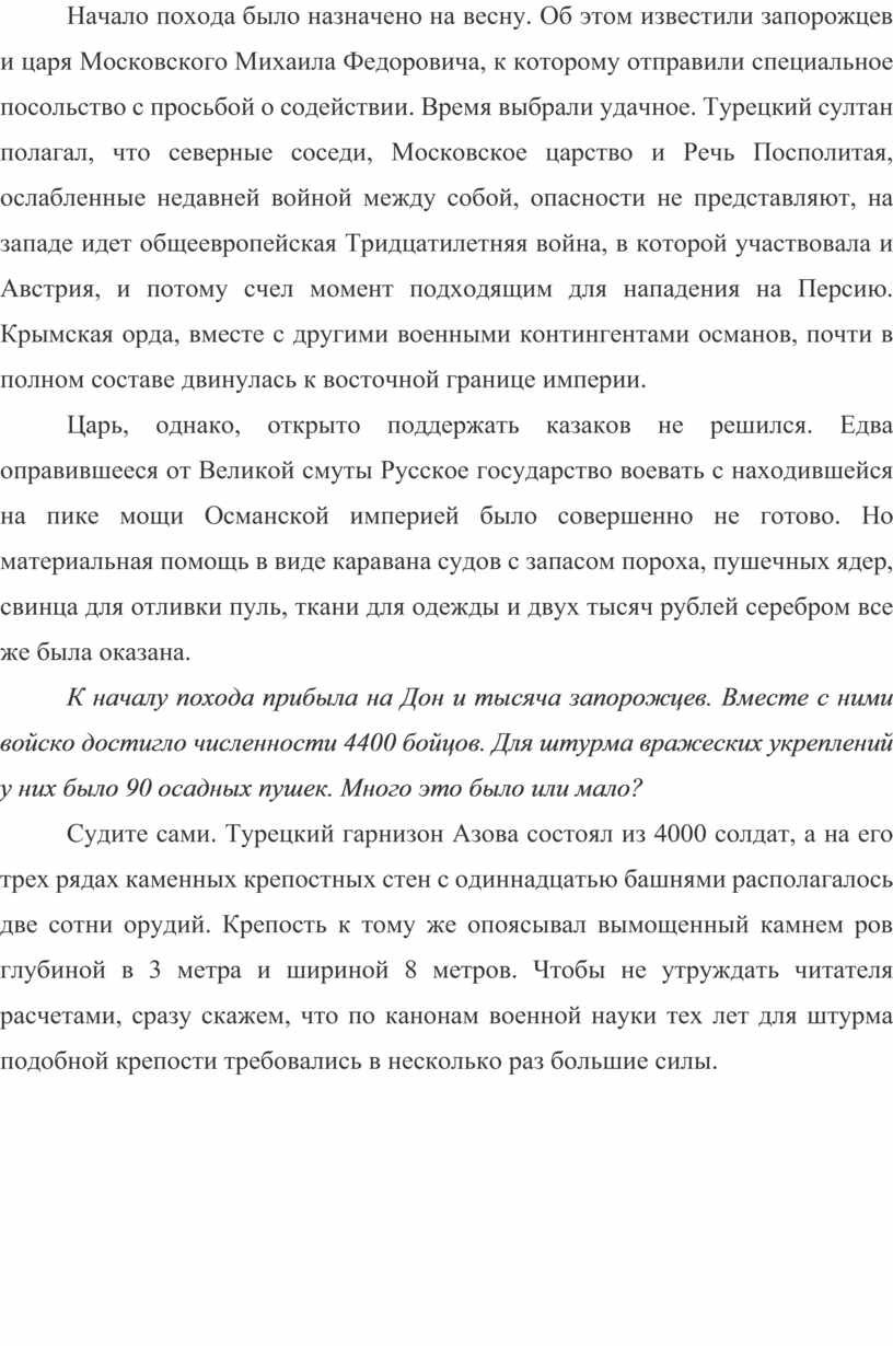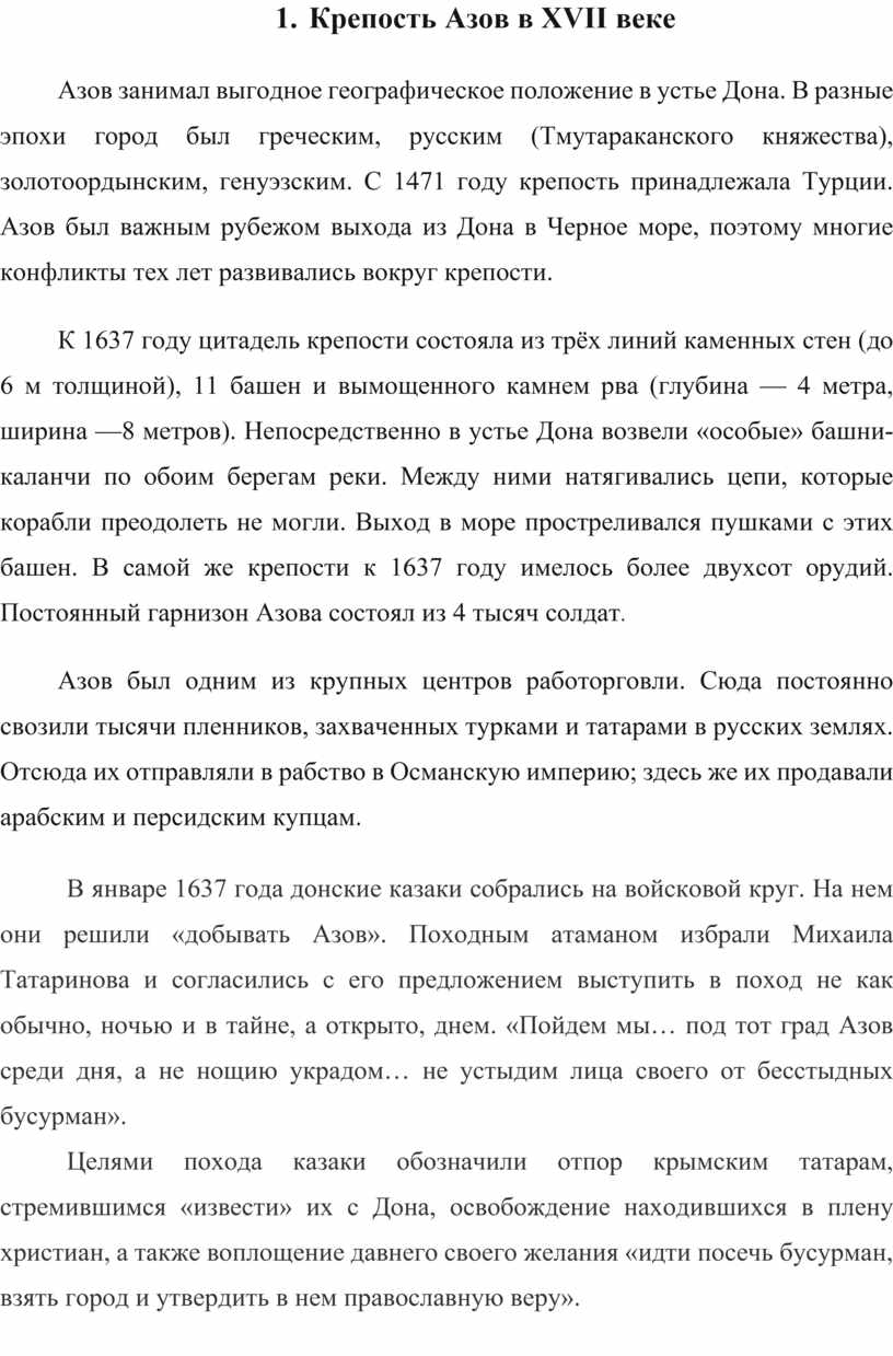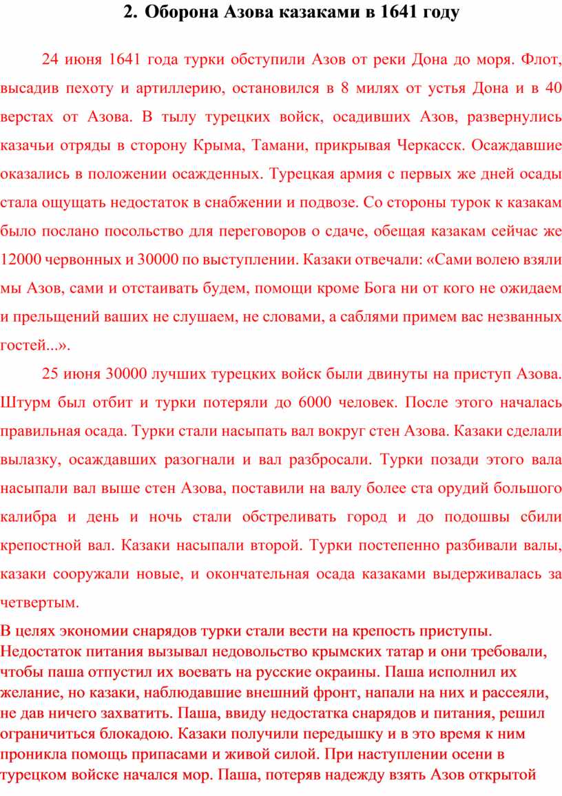 4. Оборона Азова казаками в 1641 году………………………..8 с.