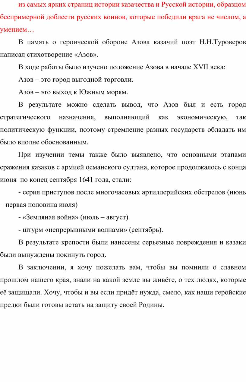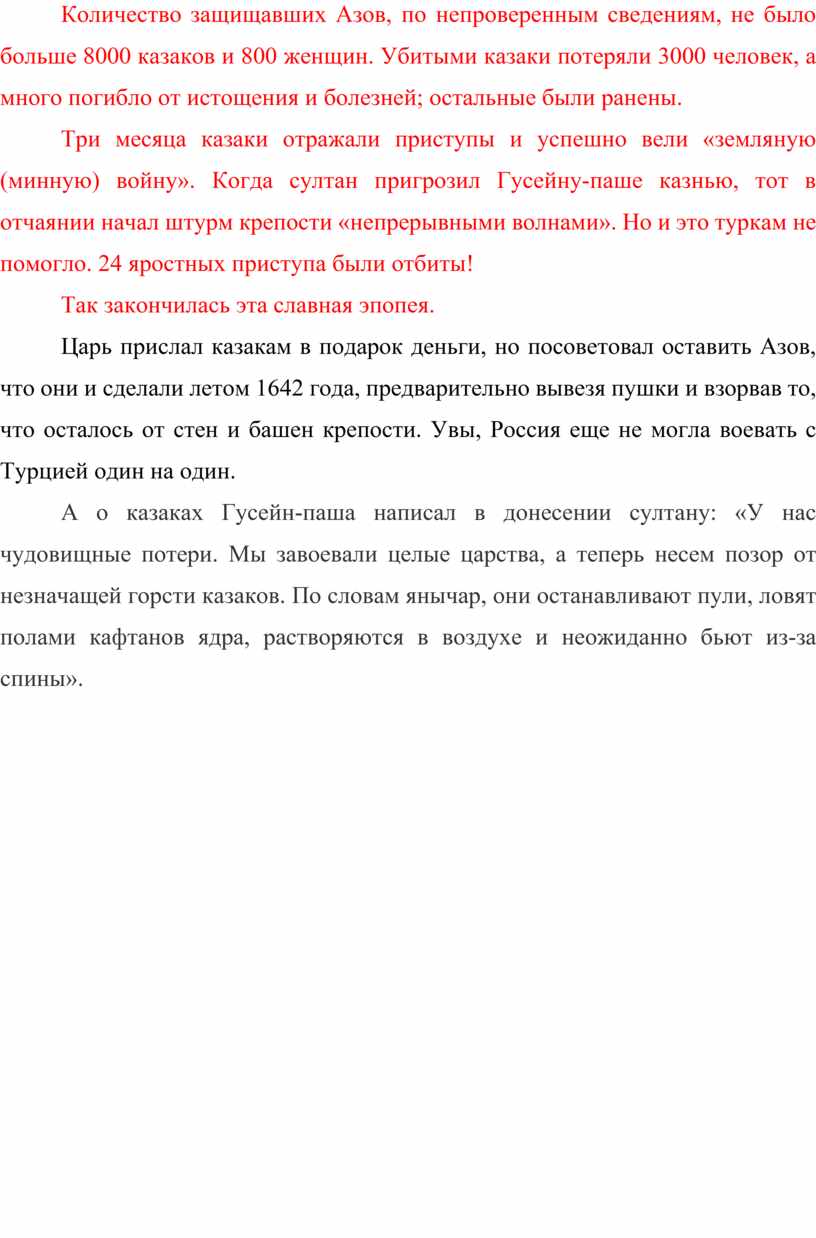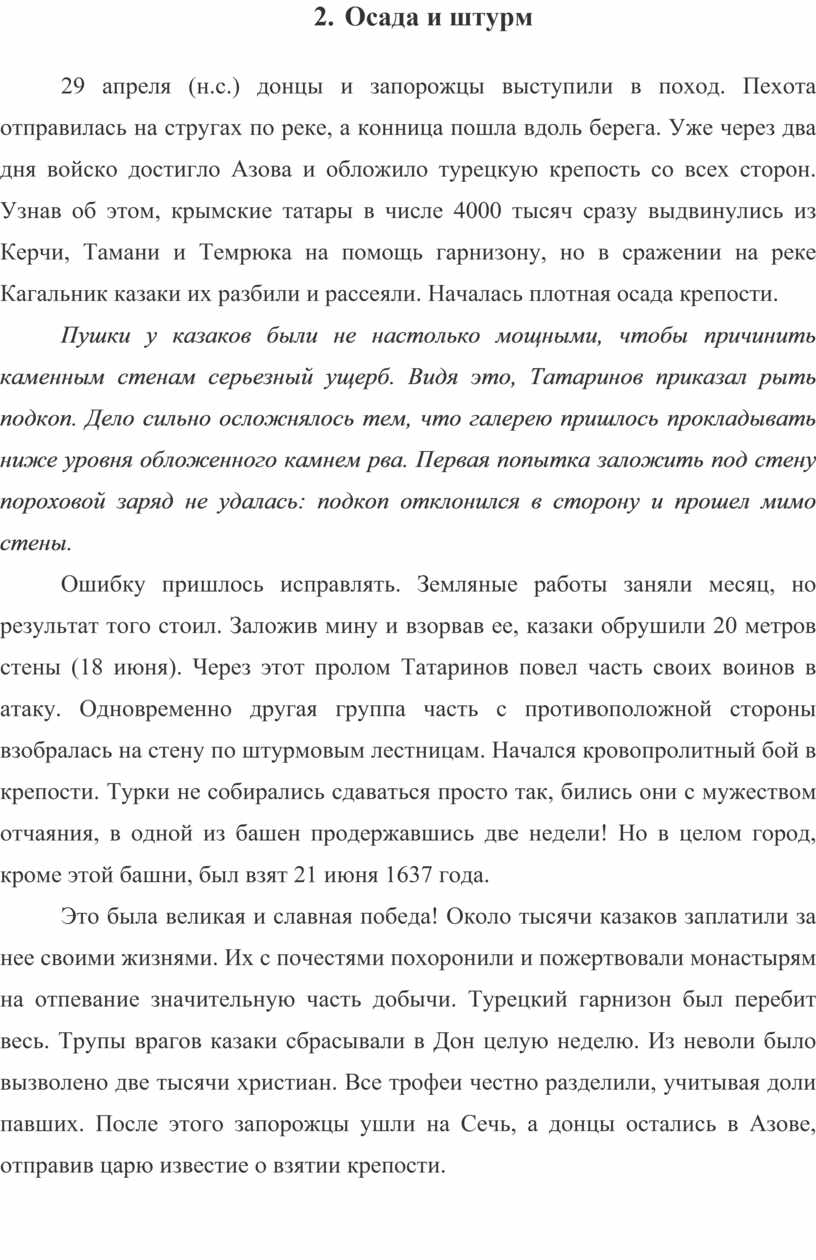 4. Оборона Азова казаками в 1641 году………………………..8 с.