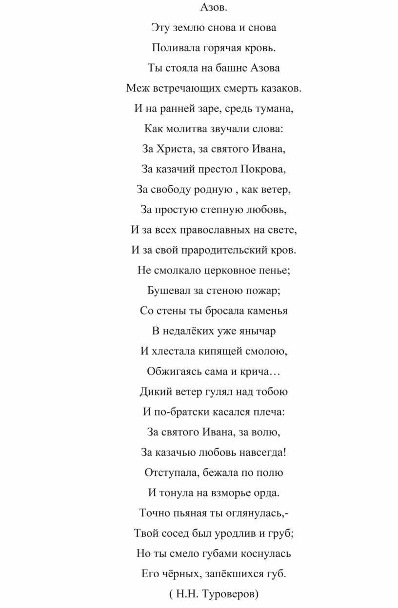 В память о героической обороне Азова казачий поэт Н.Н.Туроверов написал стихотворение «Азов».
