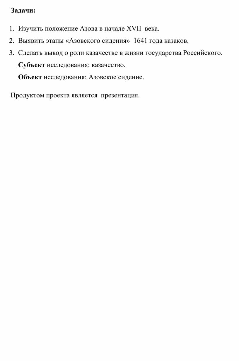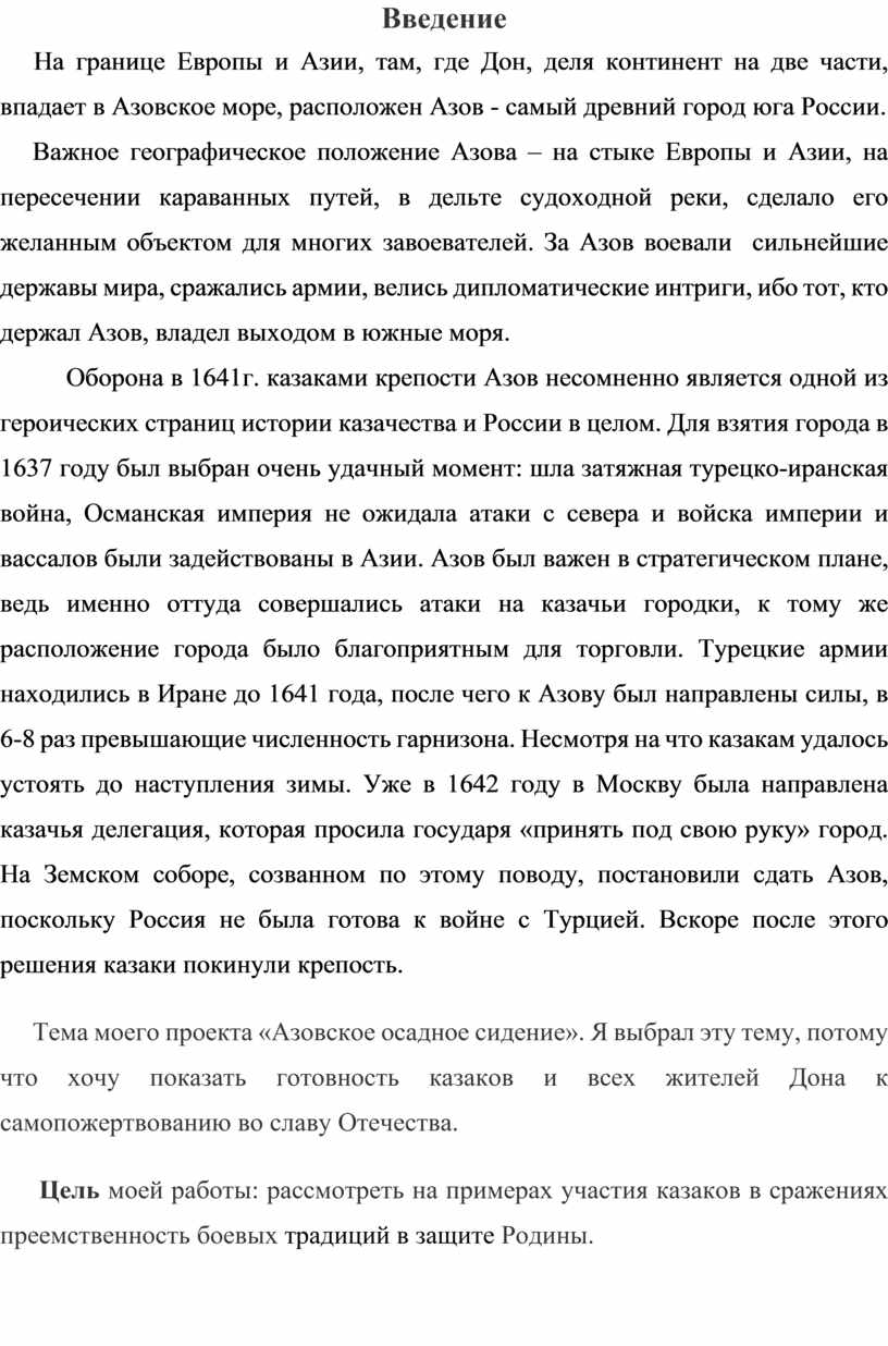 Тема моего проекта «Азовское осадное сидение». Я выбрал эту тему, потому что хочу показать готовность казаков и всех жителей Дона к самопожертвованию во славу Отечества.