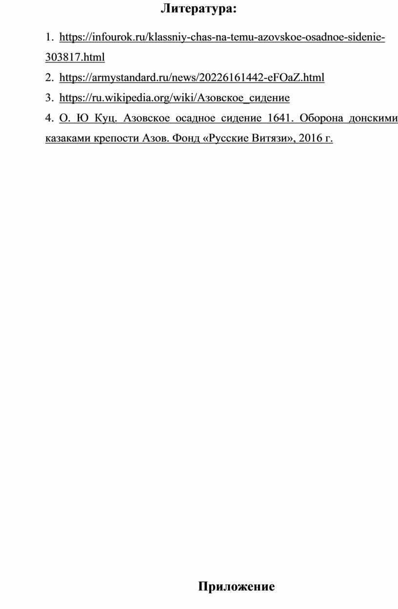 1. https://infourok.ru/klassniy-chas-na-temu-azovskoe-osadnoe-sidenie-303817.html