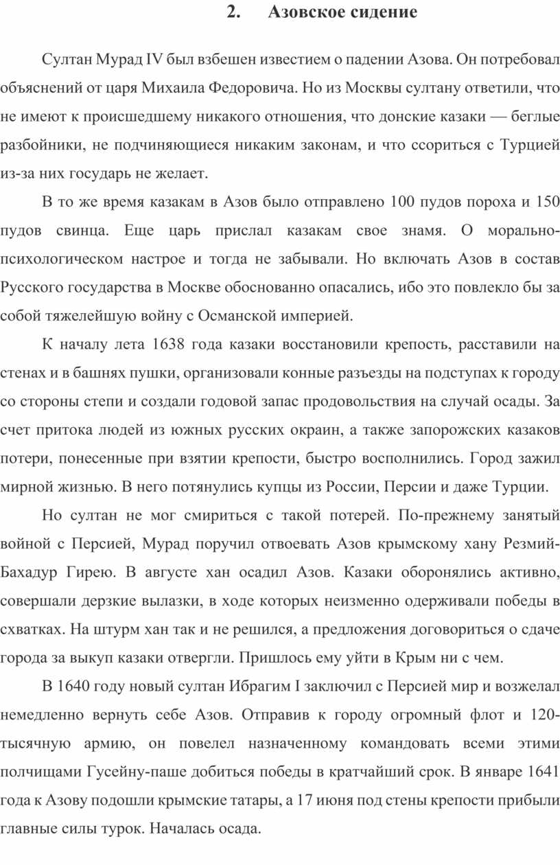 2. Выявить этапы «Азовского сидения» 1641 года казаков.