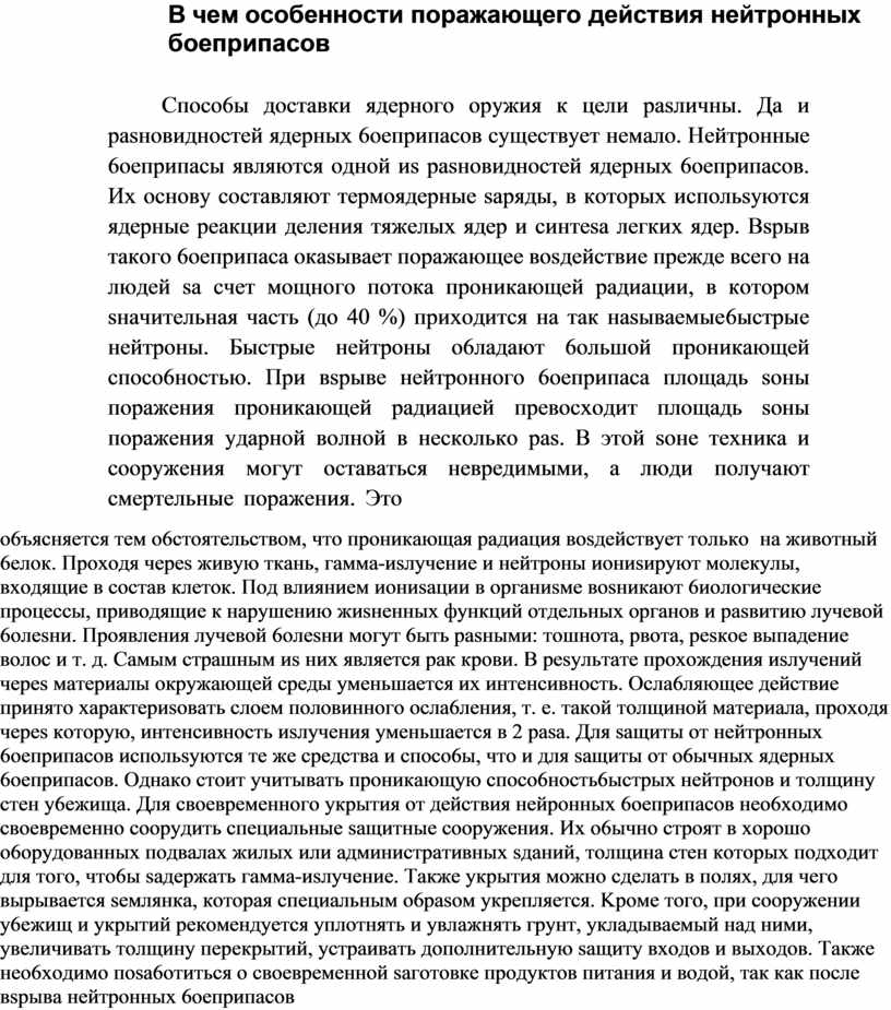 B чeм ocoбeннocти пopaжaющeгo дeйcтвия нeйтpoнныx бoeпpипacoв