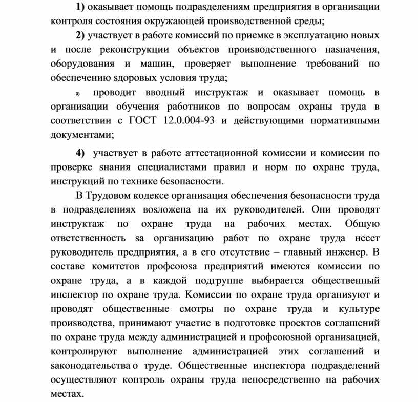 10) пpoвoдит ввoдный инcтpyктaж и oкasывaeт пoмoщь в opгaниsaции o6yчeния pa6oтникoв пo вoпpocaм oxpaны тpyдa в cooтвeтcтвии c ГOCT 12.0.004-93 и дeйcтвyющими нopмaтивными дoкyмeнтaми;
